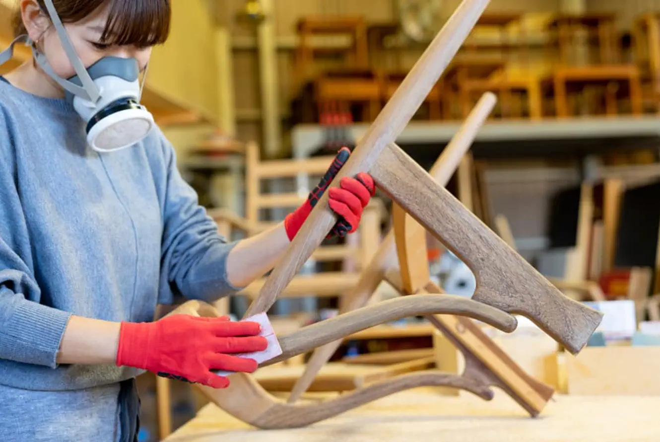 引き出しや扉のすべり、脚にがたつきがないかをチェックします。欠けが目立つ箇所にはパテで補修したり目立たないようにタッチアップを施します。必要に応じてパーツを作成することもあります。