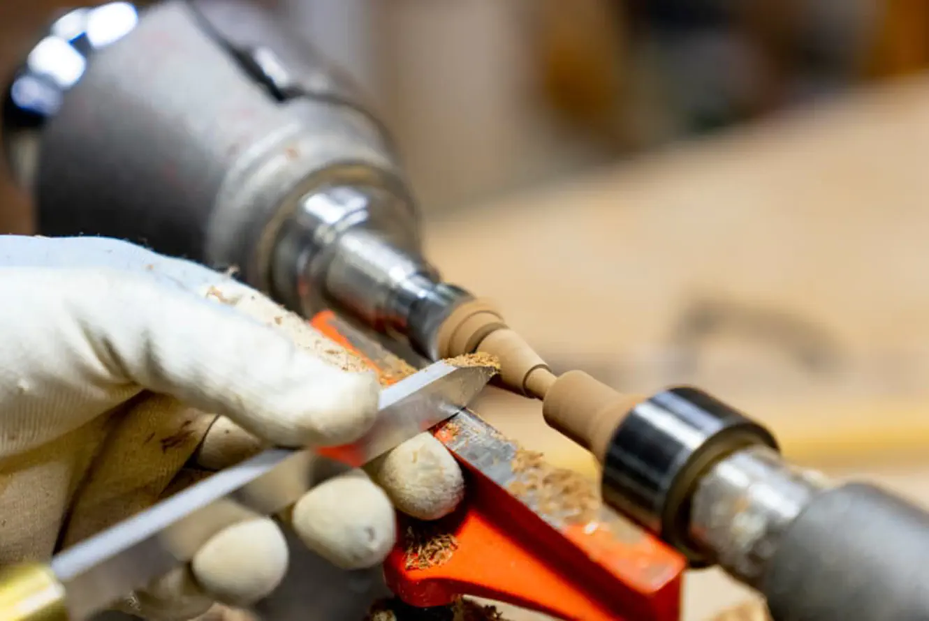 複数の番手を使用して表面を調整します。美しい仕上がりを目指しそのコンディションによっては導管の汚れを針を使ってひとつひとつ取り除くなど、簡易メンテナンスでは行わない細かな作業を行います。その後オイル塗布して仕上げです。
