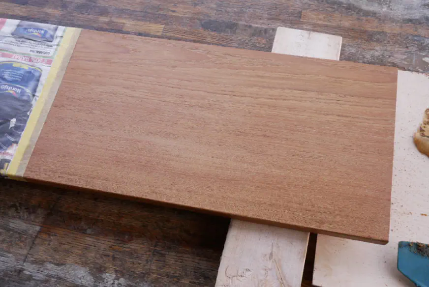 全体を調整後、ダストを除いた状態です。水漏れによる塗装ムラは落ちたようですが、シミや小傷の跡が残っています。こちらの状態からオイルを塗布します。