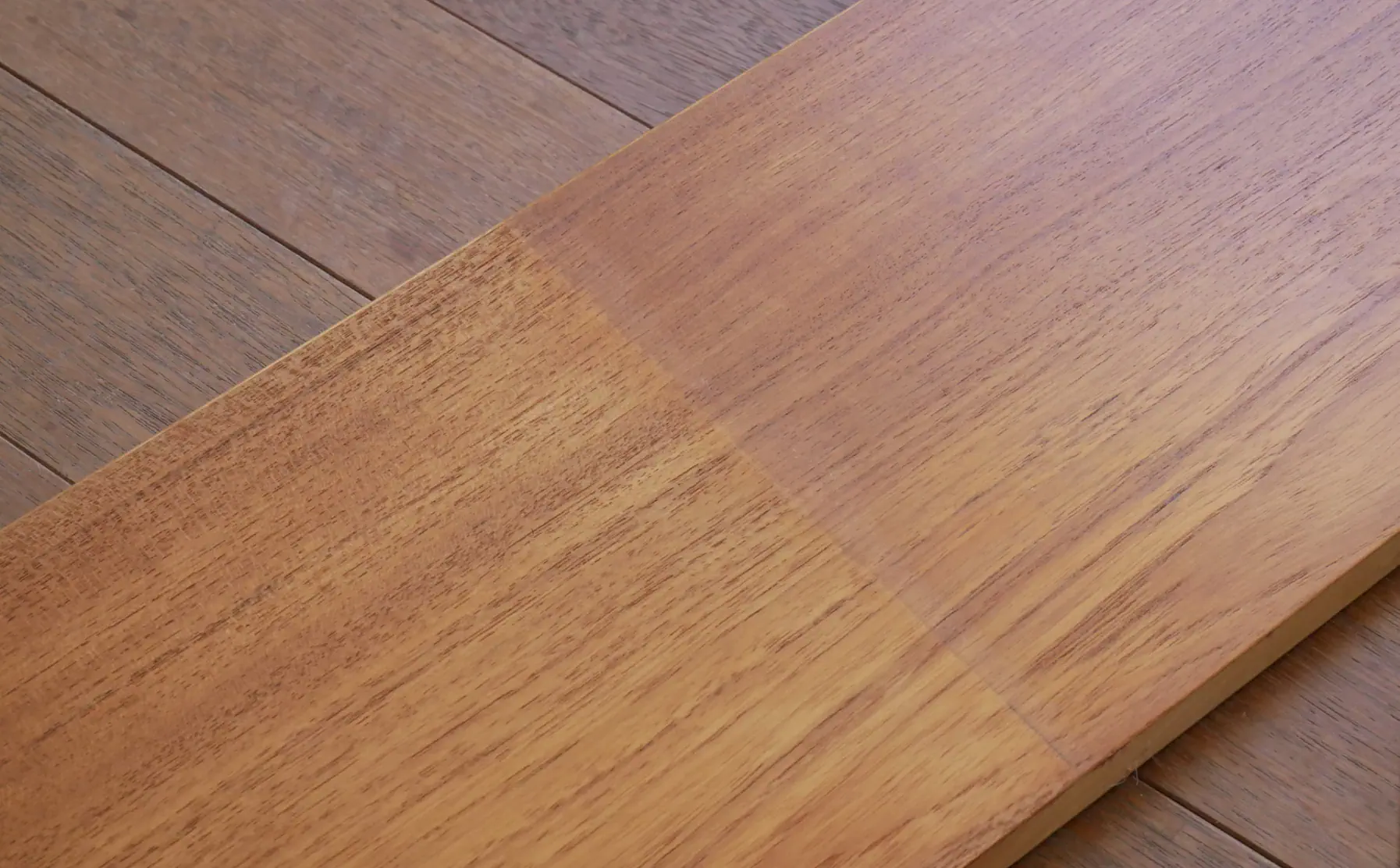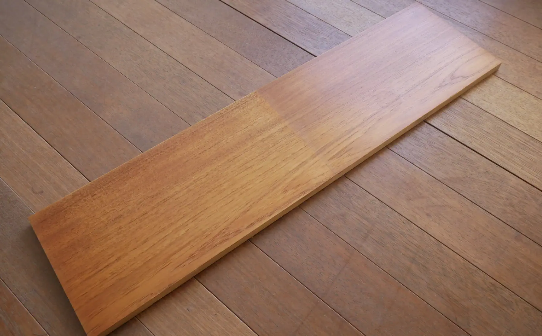 フルメンテナンス側と簡易メンテナンス側のそれぞれ下地処理を行った後にオイル塗装をした状態がこちらとなります。双方とも元々の状態よりもきれいに仕上がりましたがそれぞれの個所を拡大して様子を見てみましょう。