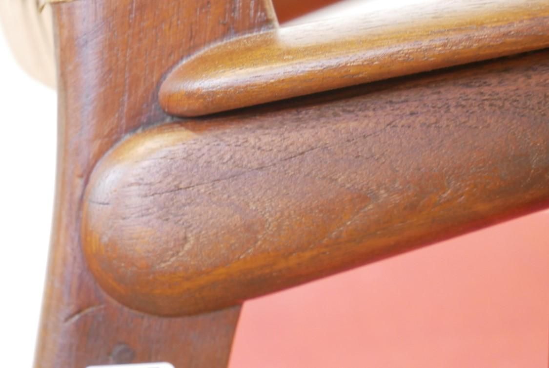 接合部の緩みやぐらつきを取るため、分解できる箇所は分解。それぞれのパーツの表面を研磨し、必要に応じてオイルを塗布。座面は中身のウレタンを交換した上で、新しいものに張り替えを行いました。