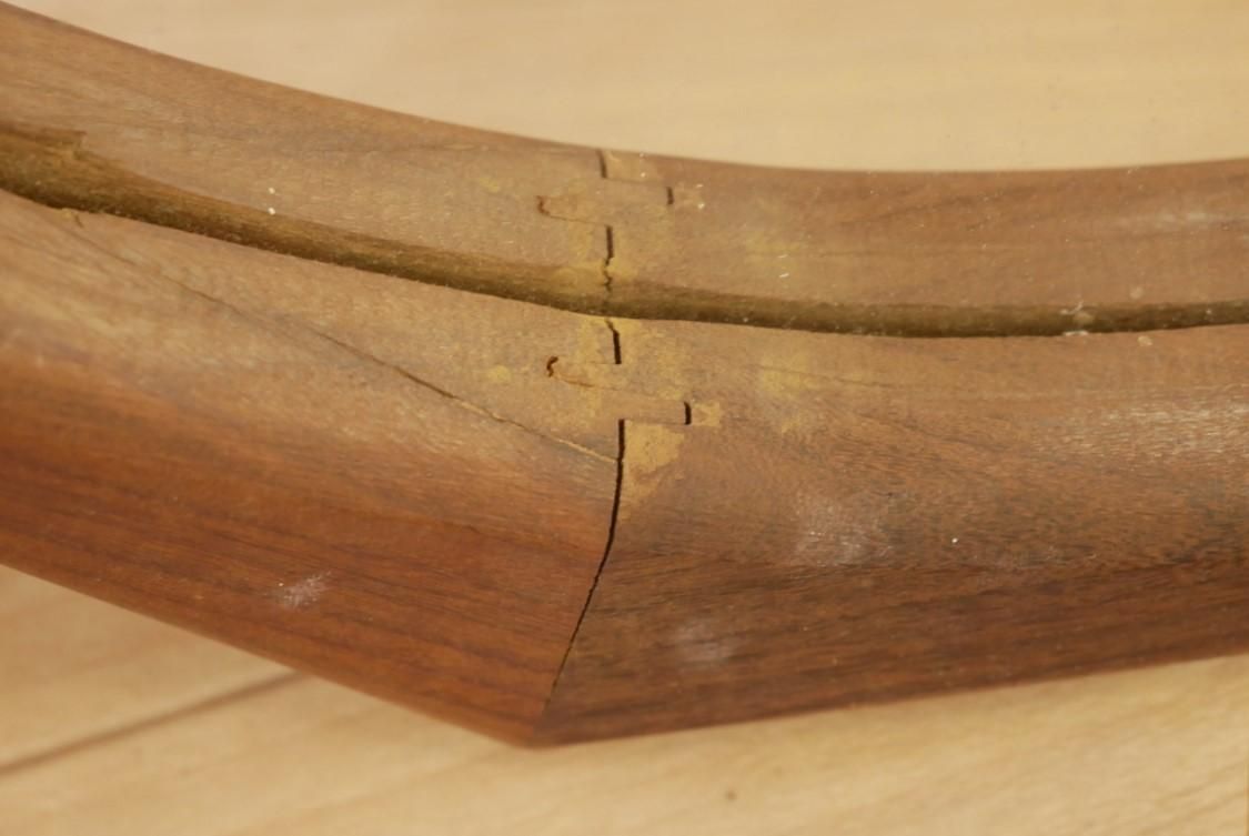 接合部の緩みやぐらつきを取るため、分解できる箇所は分解。それぞれのパーツの表面を研磨し、必要に応じてオイルを塗布。座面は中身のウレタンを交換した上で、新しいものに張り替えを行いました。