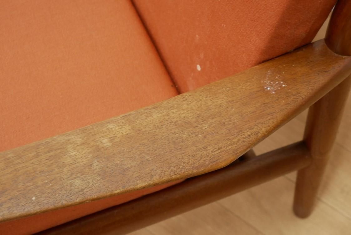 ハンス・J・ウェグナーによってデザインされた傑作チェア。フォルムから座り心地のよさが伝わってくるものの、このままでは傷などの劣化が目立ちます。