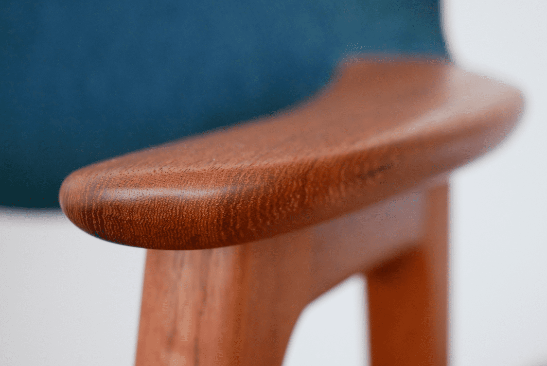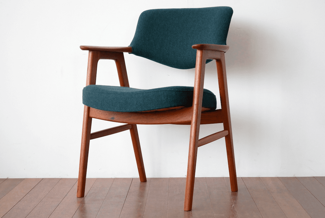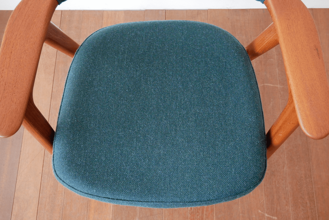 コメント デンマークで買い付けたエリック・キルケゴーのアームチェア。いろいろなアームチェアの中でも座り心地は特におすすめの一脚。座面のウレタンは通常のダイニングチェアの倍近い厚さの為、とてもふかふかで長時間の使用でもお尻が痛くなりません。また包み込まれるような背もたれとしっくりくるアームも絶妙な角度でとても体に馴染むため、デスクワークなど長時間の使用に持ってこい。その佇まいやチーク材の杢目の美しさも魅力の一脚です。座面高が47cmと高めですが、ウレタンを厚め(60mm)にしているため沈み込みますので実質44cm前後になります。