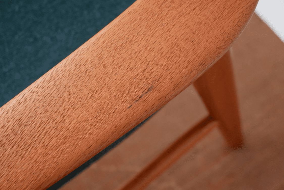 ハンス・J・ウェグナーによってデザインされた傑作チェア。フォルムから座り心地のよさが伝わってくるものの、このままでは傷などの劣化が目立ちます。