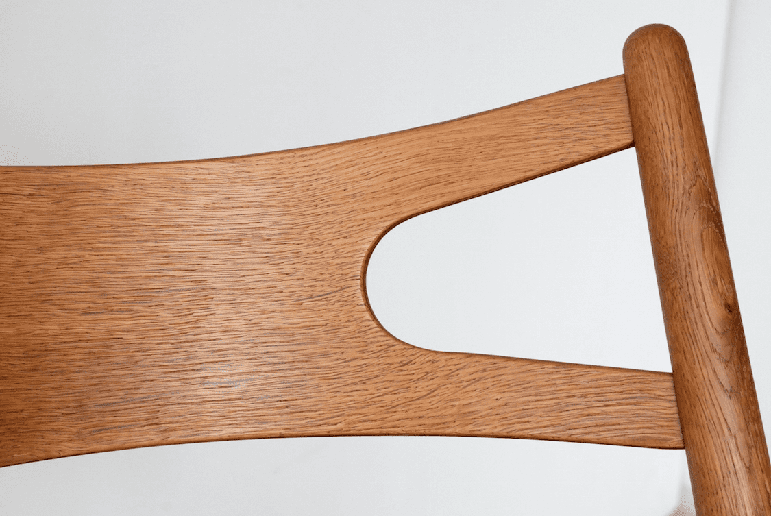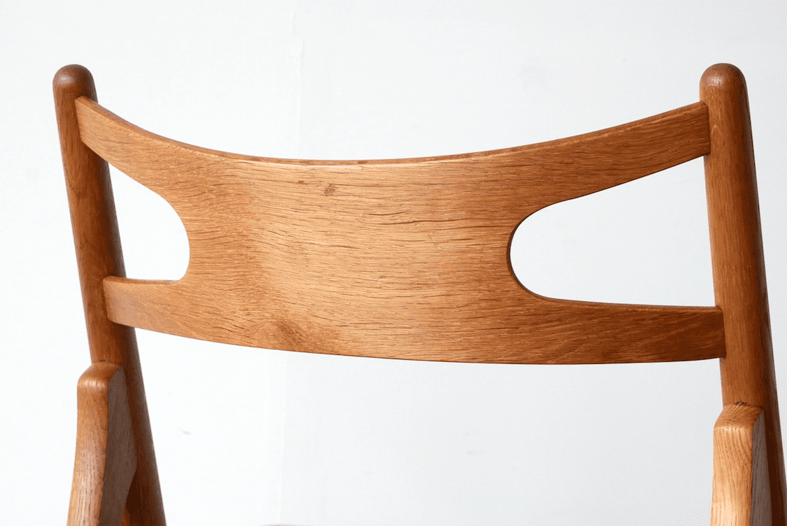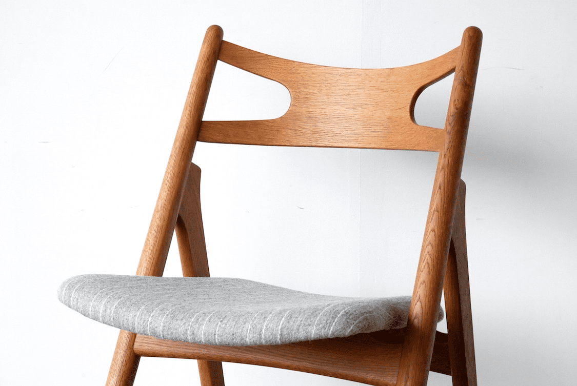 コメント デンマークで買い付けたハンス・J・ウェグナーのCH-29。Xの形に作られた背もたれとトラス構造を採用した構造は美しさと機能性を兼ね備えたデザイン。背もたれと座面の角度が絶妙でしっくり体が収まる座り心地が魅力。座り心地でおすすめを聞かれたらいつもおすすめしているモデルです。こちらのオーク材仕様は現行品でも生産がされていますがこちらはヴィンテージ仕様となり、柔らかいエッジの処理や時間を掛けなければ表れない木の色味や雰囲気は現行品にはないヴィンテージならではの魅力です。こちらはKjellerup VæveriのSAMSØにて張替しました。