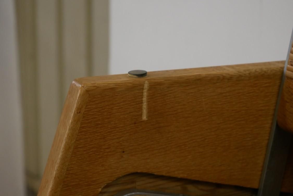 接合部の緩みやぐらつきを取るため、分解できる箇所は分解。それぞれのパーツの表面を研磨し、必要に応じてオイルを塗布。座面は中身のウレタンを交換した上で、新しいものに張り替えを行いました。