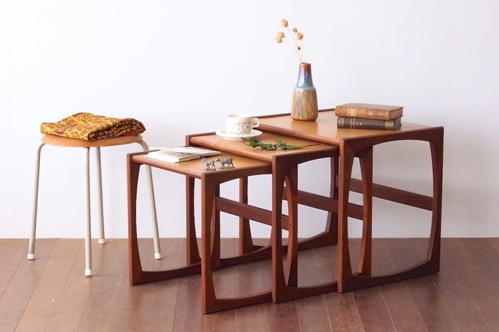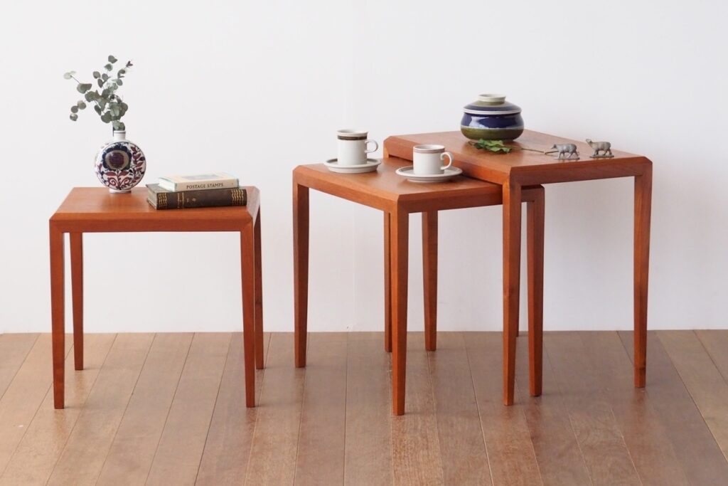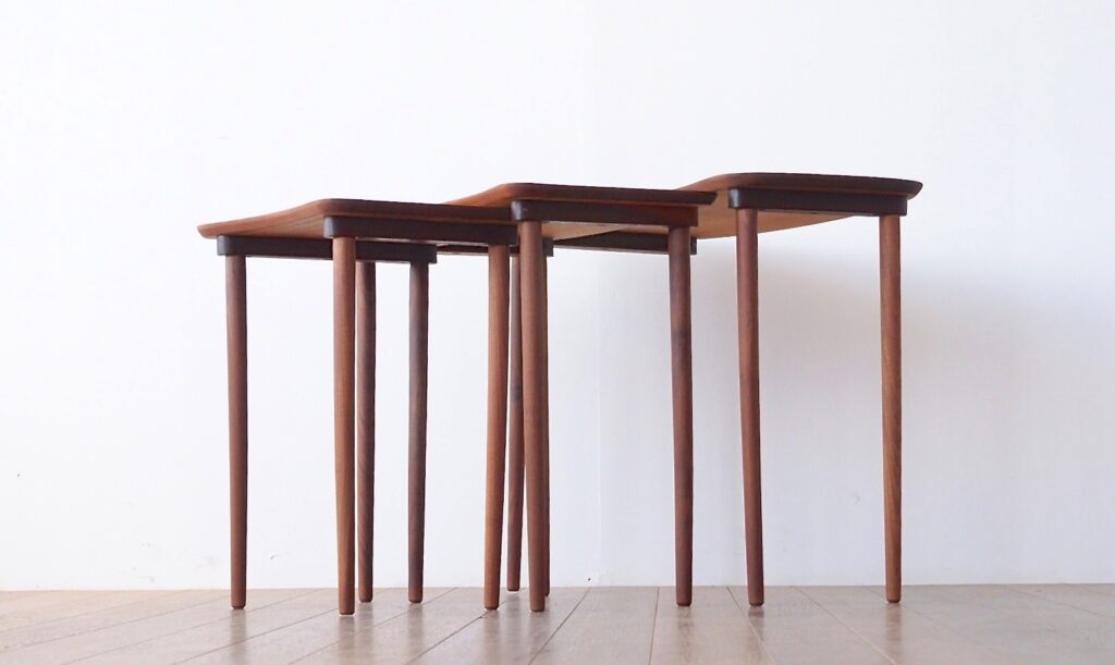 ビンテージ北欧家具の中ではメジャーな存在のネストテーブルは日本ではあまり馴染のない家具ですが、実は美しさと実用性を兼ね備えたテーブル。サイドテーブルをお探しの方は是非ご検討ください。
