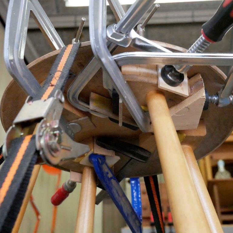 小さいスツール、ガチガチに固定され痛々しい姿ですが、