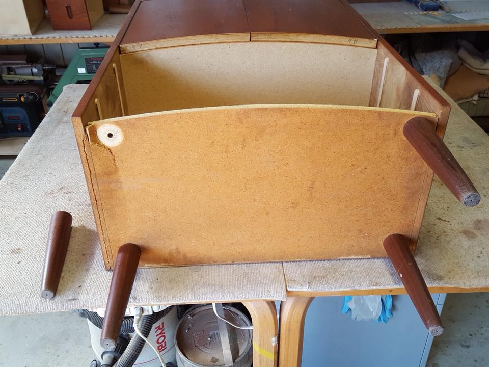 買付の時に気付かなかったのですが、底板が割れていました。強度が必要な部分ですので底板を丸ごと作成しました。