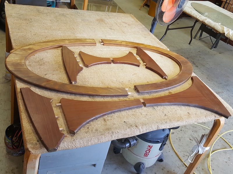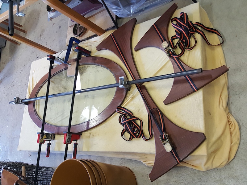 G plan ガラストップテーブル 接着の様子