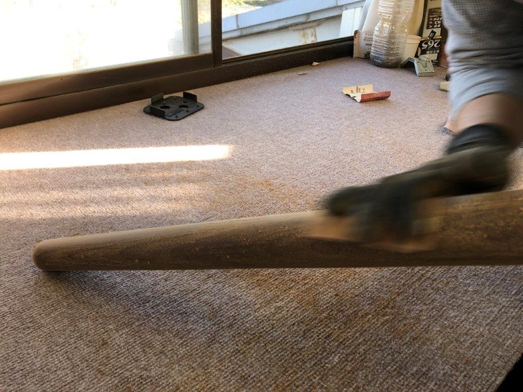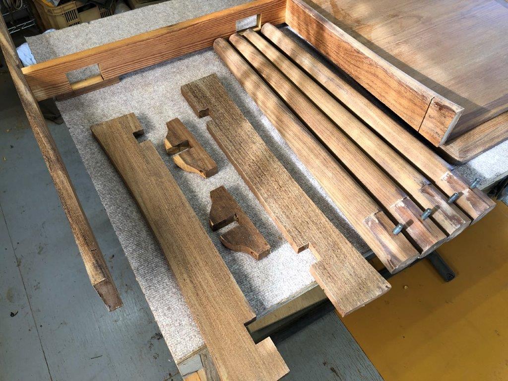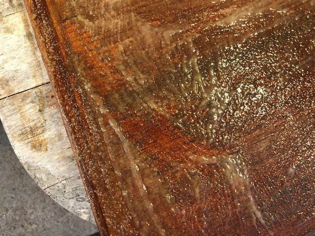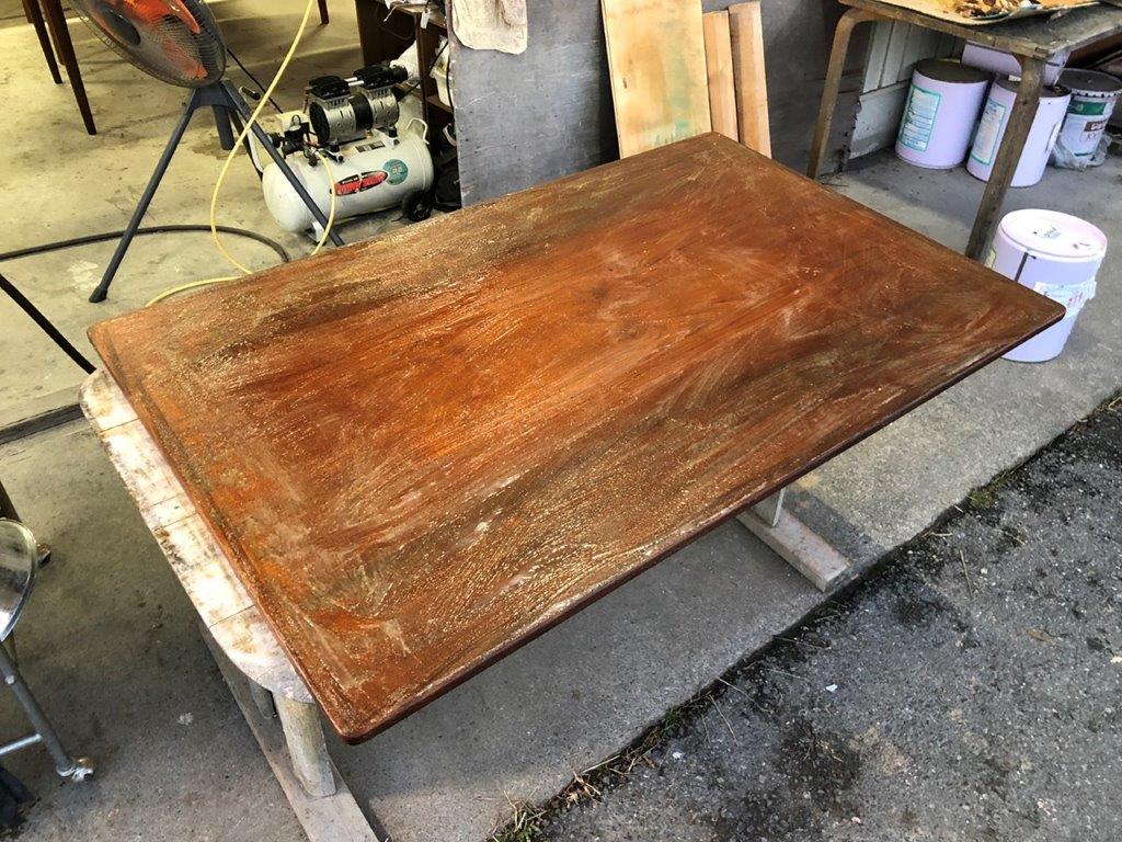 一見綺麗そうに見えてもけっこうな汚れが付いているものもあり、中途半端に汚れだけ落としてオイルを塗ってもべとついてきたりしますのでしっかり古い塗装は落として本来の木の色味に戻します。