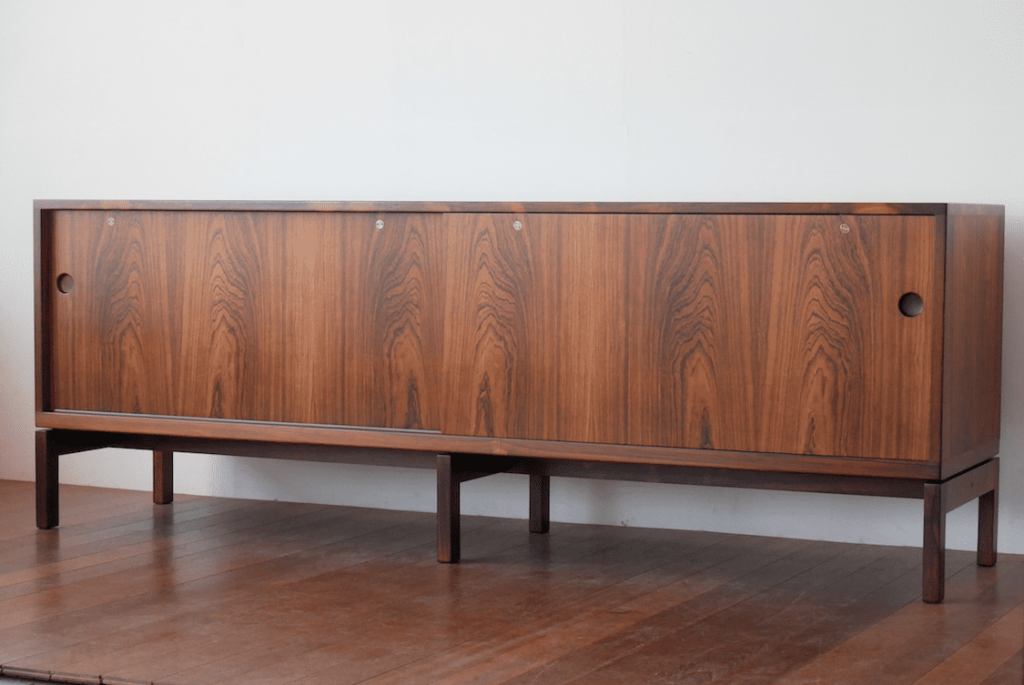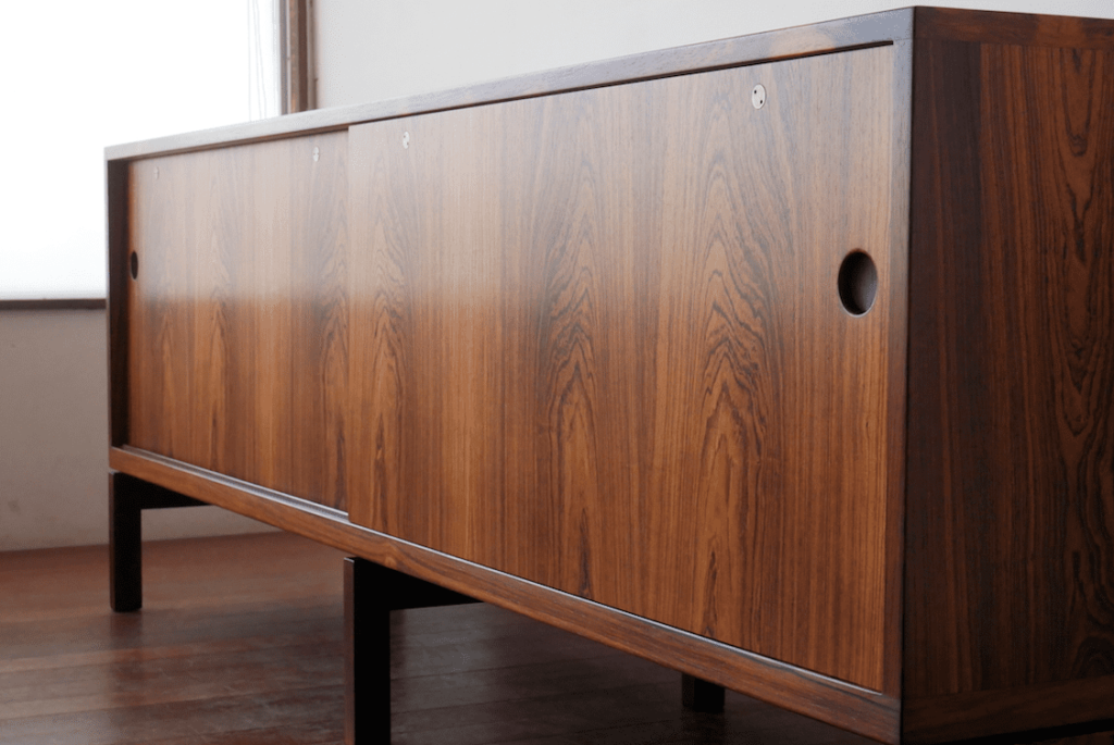 1950~70年代ではまだこのような材が豊富に流通していたため、現在では考えられないような贅沢な材の使い方をしており、現代で当時と同じ材の使い方をして新規に製造すると新品の方が高くなる場合もあるかと思います。それほど貴重な材を使用した家具達が手に入るという点も魅力です。
