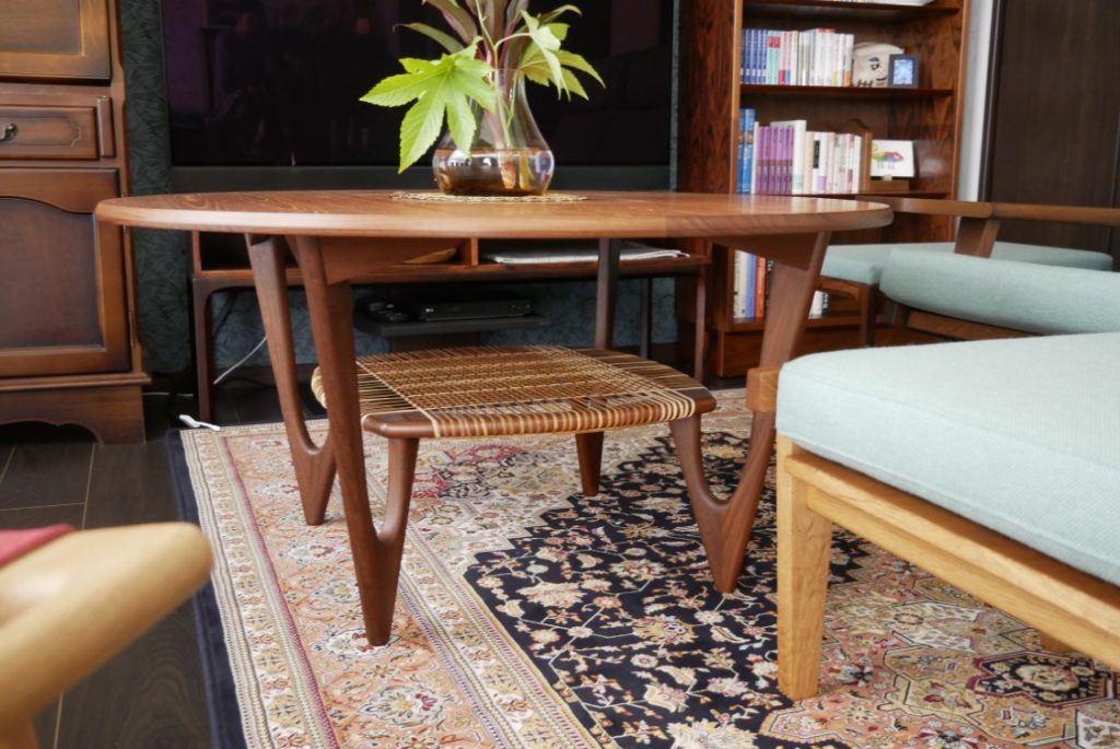 Hさん(旦那様):あんまりこれを買おうと思ってお店に行ってはいません。実際に見てこれいいかもとか、今日それ買うつもりじゃなかったのにとかはよくあって、出会いを大切にしています。このコーヒーテーブルもそうですね。別のコーヒーテーブルが気になってお店に伺ったら、たまたま目に入ったこちらのコーヒーテーブルを、おっいいねと思って購入しました。自宅に置いてみると、とてもよかったです。籐の入っている最初に購入したチェストとも相性がよく、気に入っています。