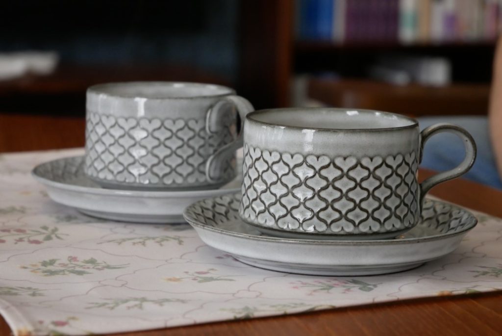 Hさん(旦那様):最初のきっかけは、自宅の近くのお店でたまたまこのコーディアルのC&Sを見つけたことです。その時はアラビアのカップなどもありましたが、一つだけこのコーディアルが置いてあって、初見で気に入って購入しました。そのお店は趣味で集めたものをちょこちょこ出しているようなお店でしたので、ほんとうに偶然の出会いでした。そこからいろいろ調べていく中でクイストゴーというデザイナーに興味を持ち、レリーフやアズールなどのシリーズがあることを知って、雑貨を探し始めました。