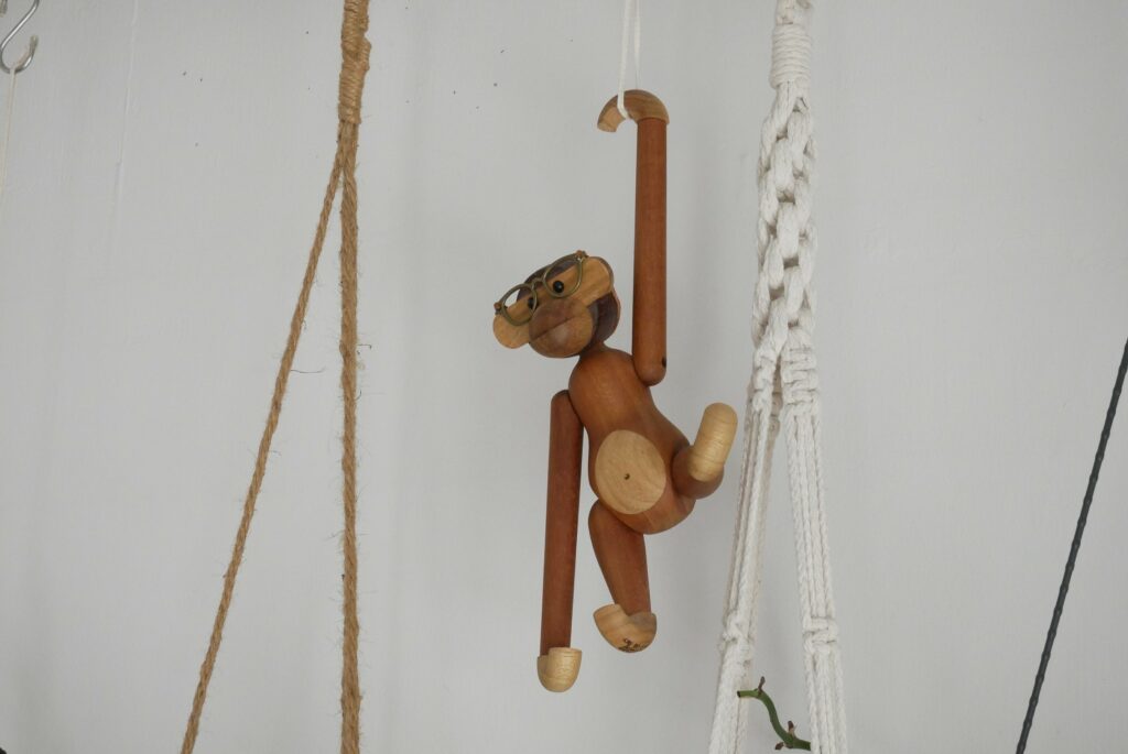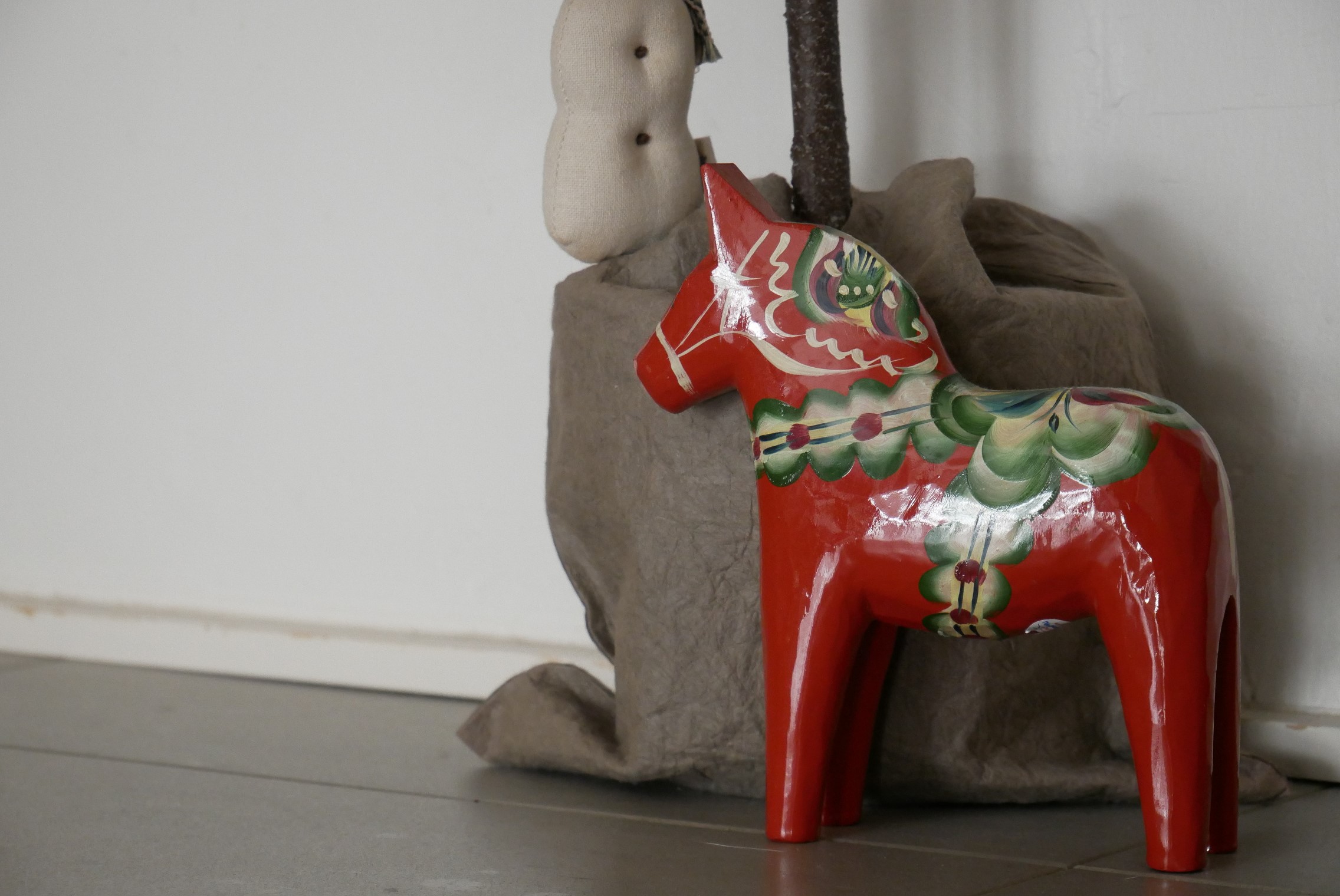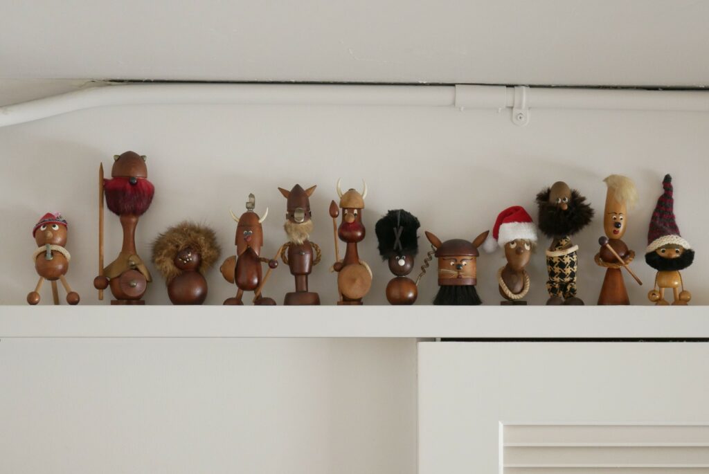 長年のコレクションのノギンス社の木製バイキング人形。愛猫に遊ばれないよう高所に配置。