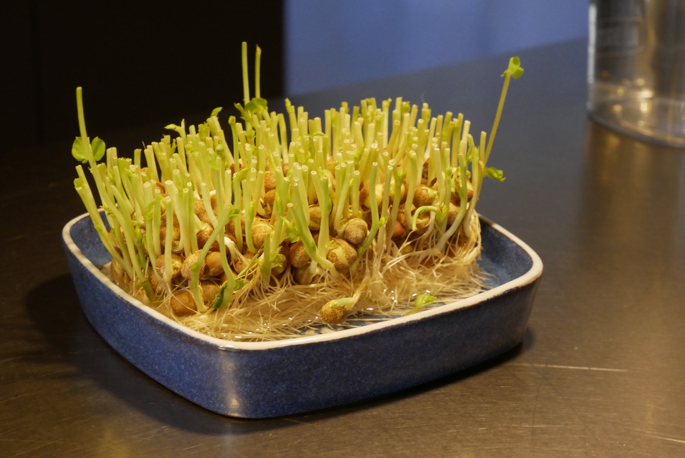 豆苗がジャストフィットしているロイヤルコペンハーゲンのスクエアプレート。