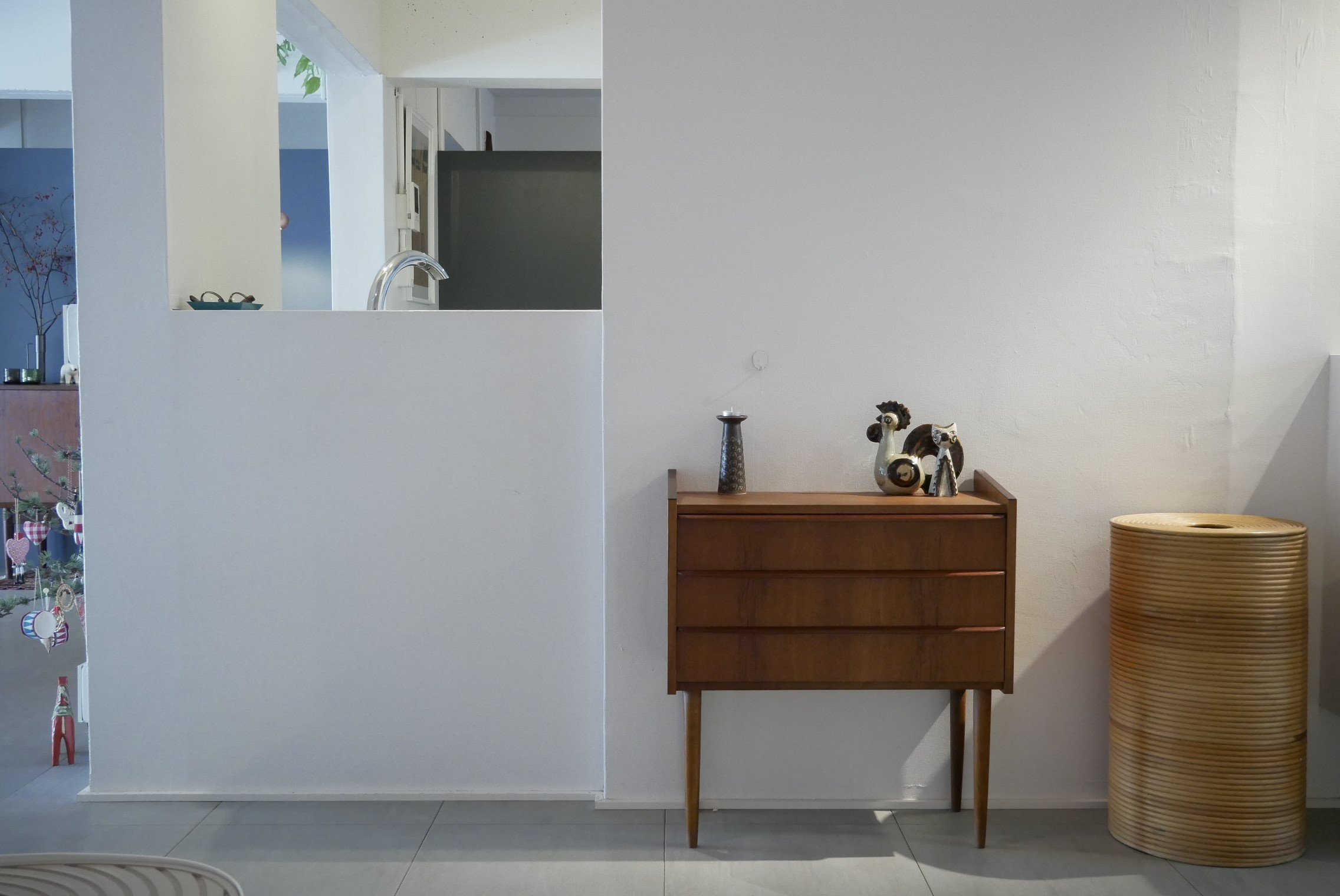 デンマークで出会った北欧ヴィンテージ家具との暮らしを、日本でも大切に続けているSさんご夫妻。現地で学んだ美意識を日常生活に落とし込み、完璧を求めず気を遣いすぎることがなくほど良いバランスで家具と向き合う姿勢は、私たちに多くのヒントを与えてくれます。チェストについたシミについて語っている瞬間も楽しそうで、こういったことも良い思い出となるのだなと改めて感じました。白を基調とした心地よい空間の中で、これからも家具たちとともに、新たな暮らしの物語が紡がれていくことでしょう。いつも当店のご利用誠にありがとうございます。今後ともよろしくお願いいたします。