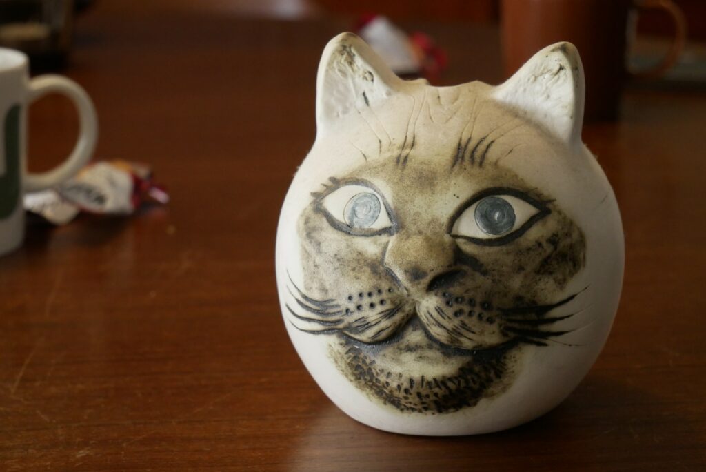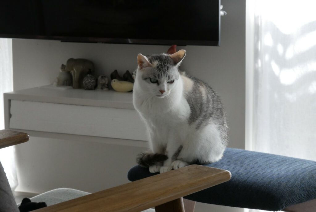 Sさん(奥様):ダイニングテーブルの上に冷たい飲み物入れたコップを置くときはコースターを敷いたり、カセットコンロは使わないなど気を付けていますが、シミの失敗は何度もあります笑。子供がお皿をガンガンやったり。でもそれはそれでいいかなと思います。また、例えばこのテーブルがウェグナーなどの高価なテーブルだったらもっと気を遣うでしょうし、無名のテーブルだし子供が何かしてもまあいっかなと思えるものを使っています。イージーチェアが猫の爪とぎにされることもありますが、最悪張り替えればいいかなと思っていますし、細かいことを気にしていたらたぶんデンマーク家具は使えないと思います。リサラーソンも猫に何個も割られていますがこれもしょうがないかなという心持ちです。