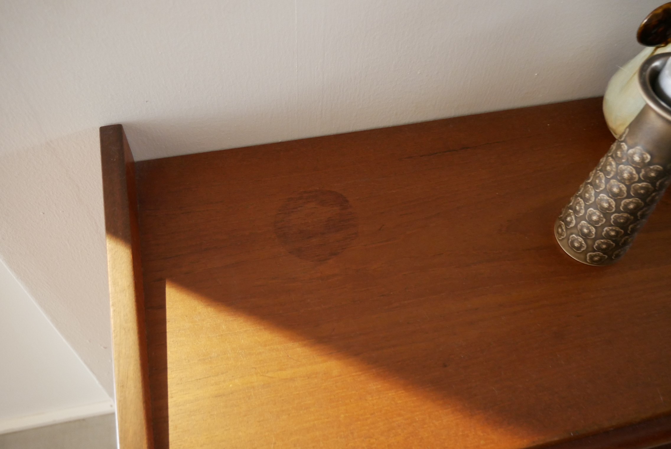 Sさん(旦那様):デンマークで最初にシミを付けたのは玄関のチェストで、猫の花瓶に水を入れて花を飾っていたらいつの間にか漏れていて、こんなことになるんだと学びました笑