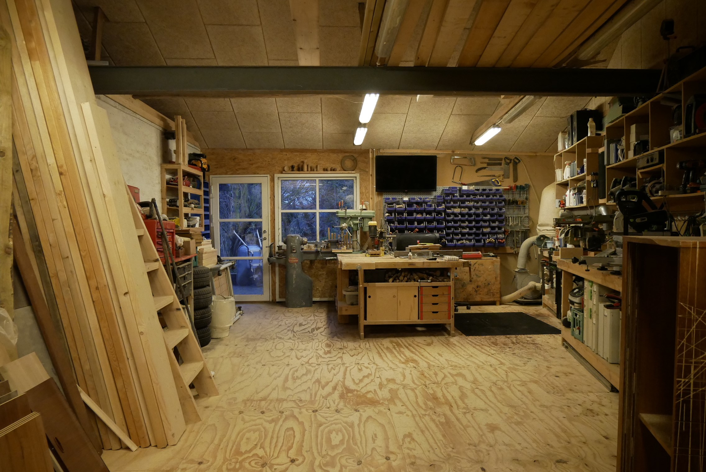 J氏はデンマーク家具のディーラーで、個人の趣味として本格的な工房を持ち木工やDIYも得意。今回はJ氏の元で買付が終わった後にご自宅を見せてもらいました。