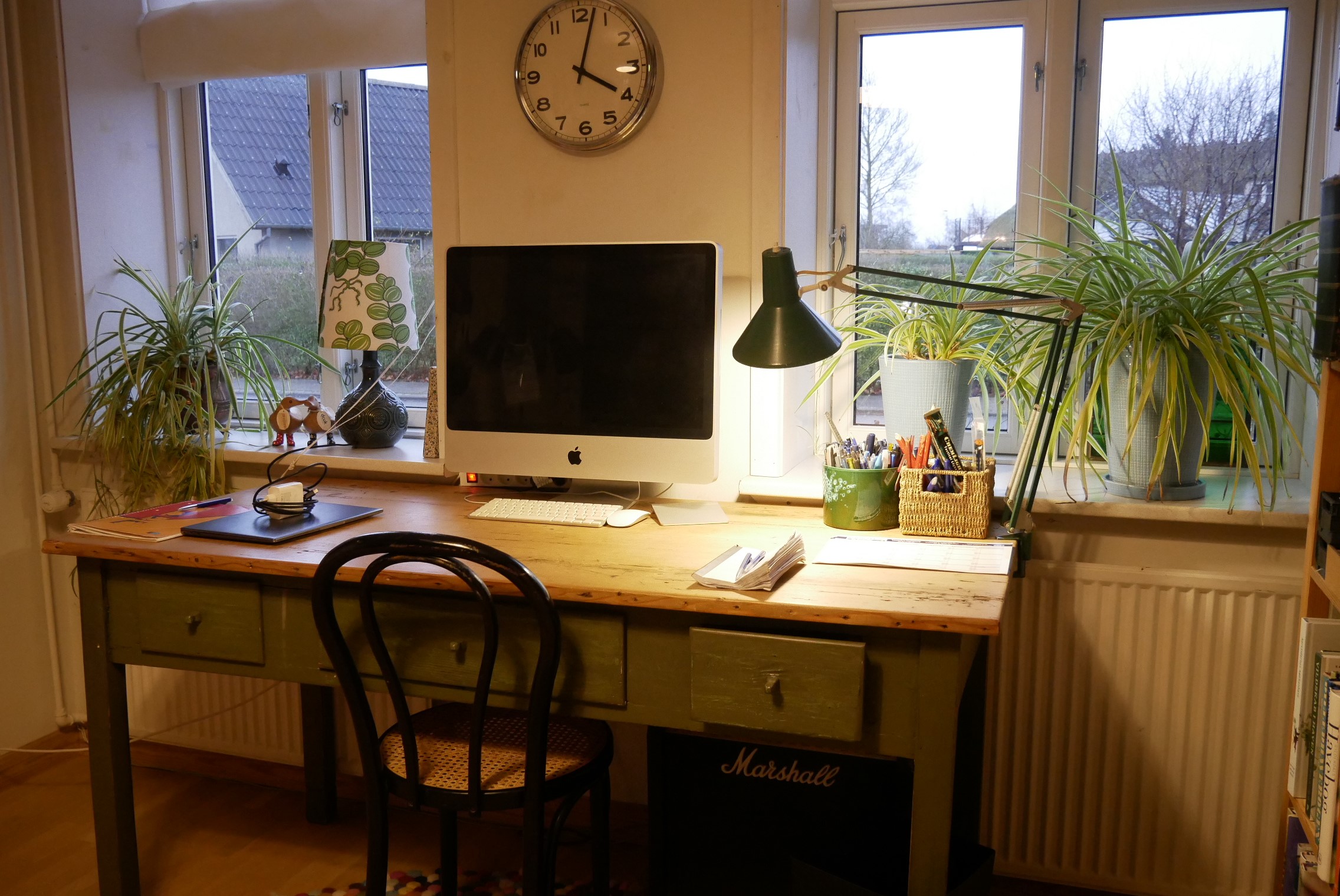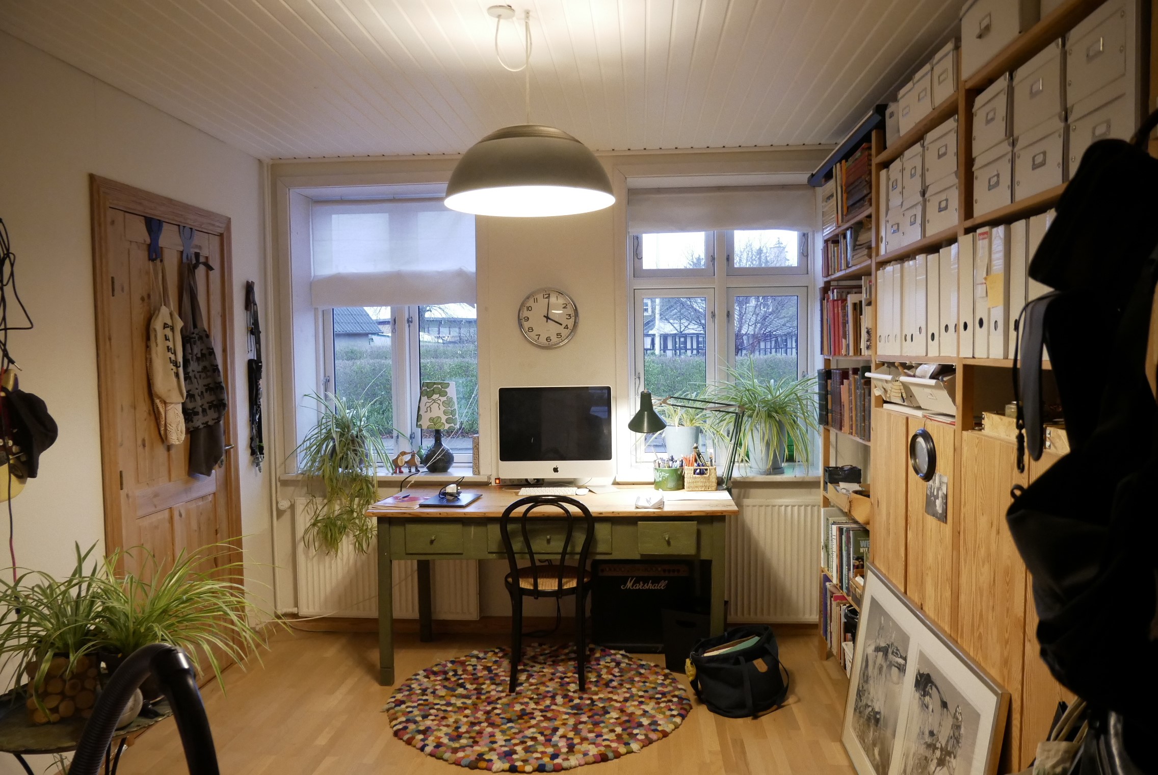 書斎スペースにはアルネ・ヤコブセンのAJロイヤルやカントリー調のデスクなどをコーディネート。