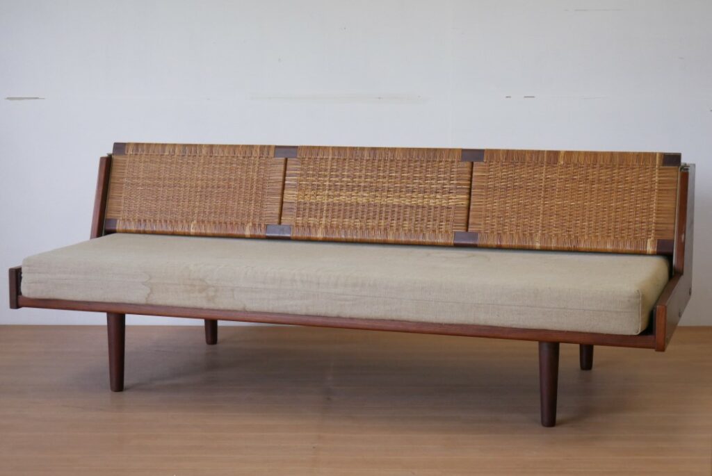 当店で取り扱う北欧ヴィンテージ家具。1950~70年代のデンマークデザインの黄金期には多様な家具が生まれ、現代でも多くの作品が人々の生活を豊かにしています。そのような様々な北欧ヴィンテージ家具の中でも定番の人気商品であるハンス・J・ウェグナーデザインのデイベッドGE258やGE259、GE-6は、雑誌やSNSなどでもよく見かけ気になる方も多いと思われる反面、大型の家具なので気軽に取り入れにくいという一面も。今回はその魅力や購入時の注意点などをお伝えします。