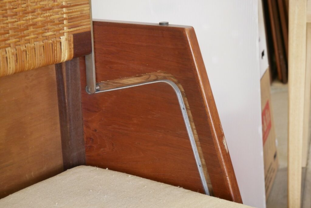 背もたれやフレーム内部の構造が他のモデルと異なり、側板の高さが少し低い造りの最初期タイプ。幅は現行モデルよりも少し幅が小さい198.5cm。背面にはスペーサーが付いています。流通するデイベッド中でも最も希少性が高いタイプで、上記画像のようにチーク材の丸脚・ラタン仕様は特に希少性が高い。コンパクト目のサイズ感や希少性の高いデイベッドをお探しの方におすすめ。