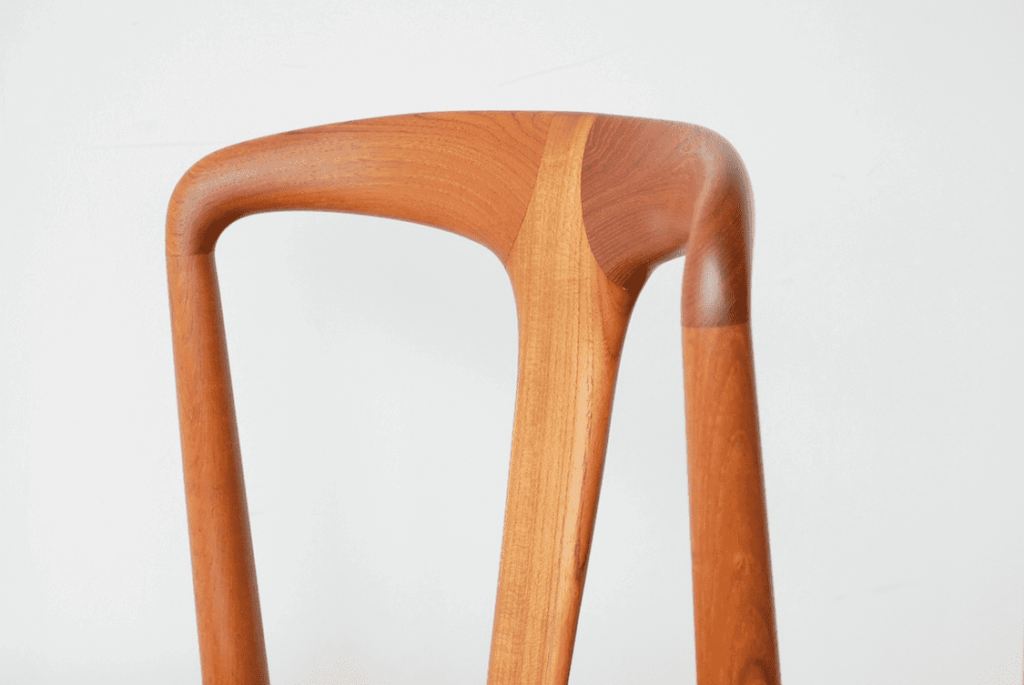 もう一脚ご紹介いたします。こちらはJulianと呼ばれるチェアですが、こちらも木を削り出して作られたとは思えない曲線を持っています。