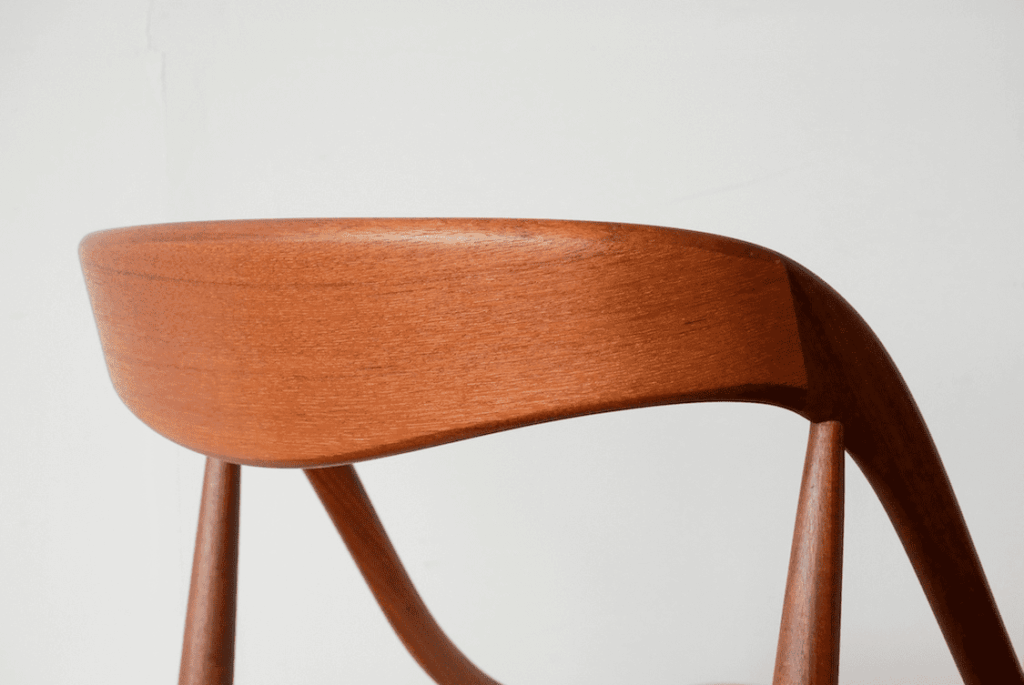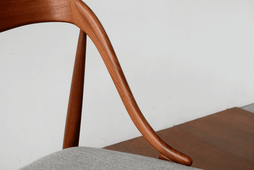 まずはなんといってもヨハネス・アンダーセンの魅力はその曲線の美しさにあります。曲線を多用した北欧ヴィンテージ家具の作品はたくさんありますが、その中でもトップクラスの曲線の美しさを持っていると思います。まずは画像にてその美しさをご覧ください。