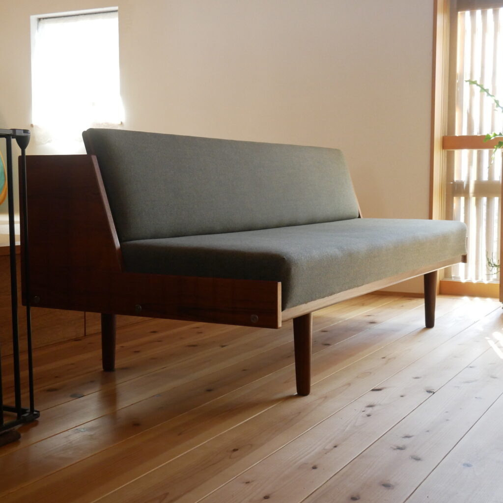 Iさん(旦那様):デイベッドもバンバン飛び跳ねたりすることもありますし、汚れたりすることもあると思いますが、そういう時は余った生地でパッチワークのように縫ってもいいと思いますし、そのくらいの感覚です。家で使うものなので気にしすぎても疲れてしまうし、リラックスして使いたい。できる対策はしますがそれ以上のことは気にしていないですね。元々古いものを好きで使っているので、なにかあったら修復しながら使っていけばいいみたいな感覚です。