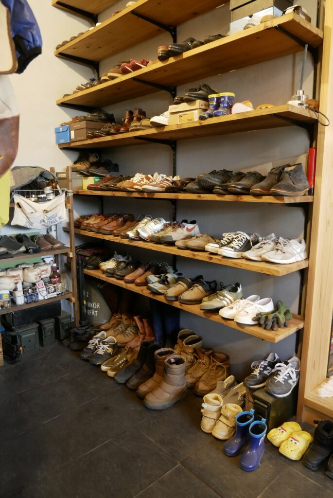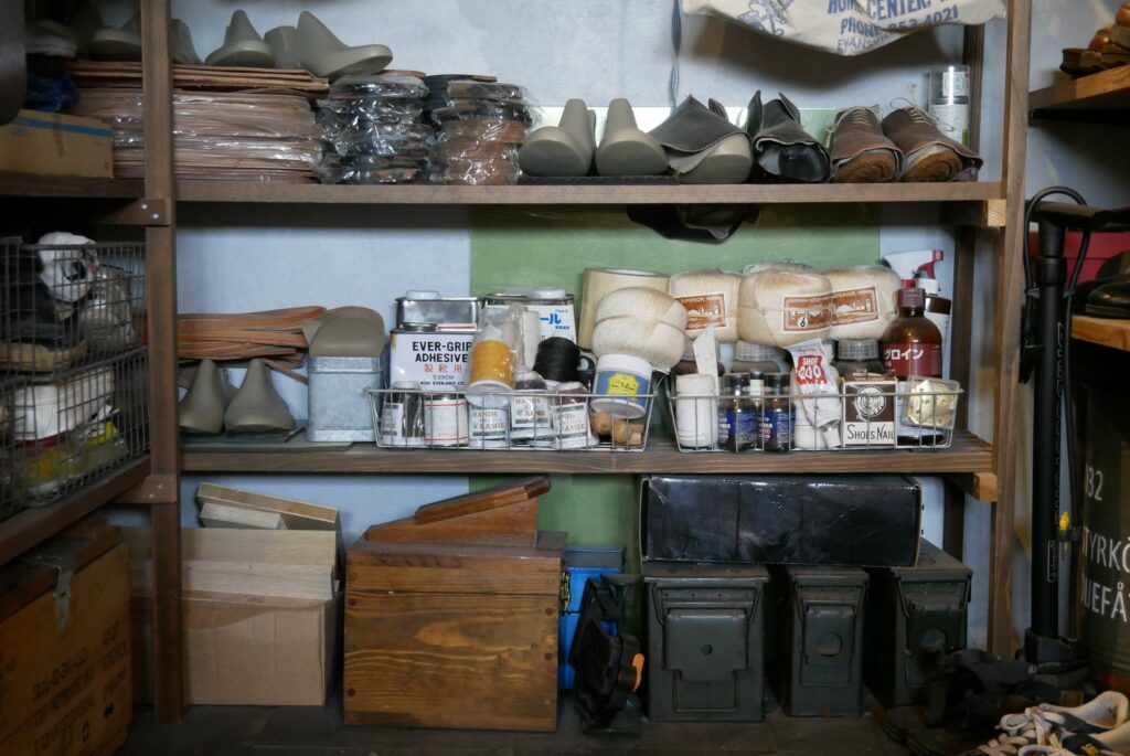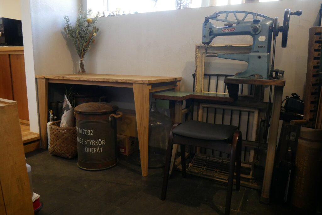 Iさん(旦那様):土間にミシンがありますが元々2年間くらい教室に通っていたことがあり、靴の修理もできます。革靴は靴底を交換すればまた長く使えますし、そういう感覚は家具をメンテナンスして長く使うなどの感覚とも近いかなと思います。