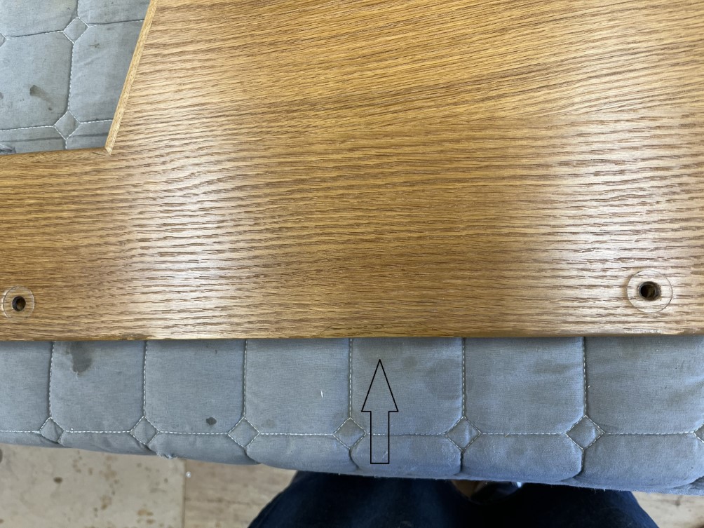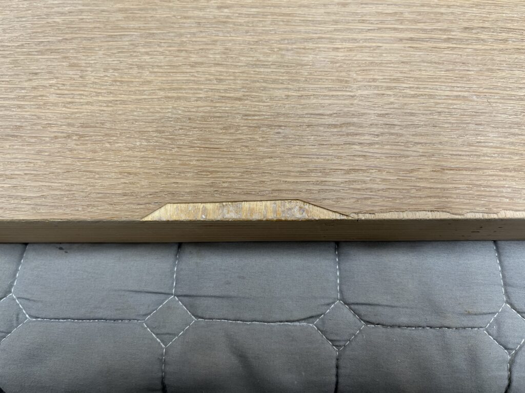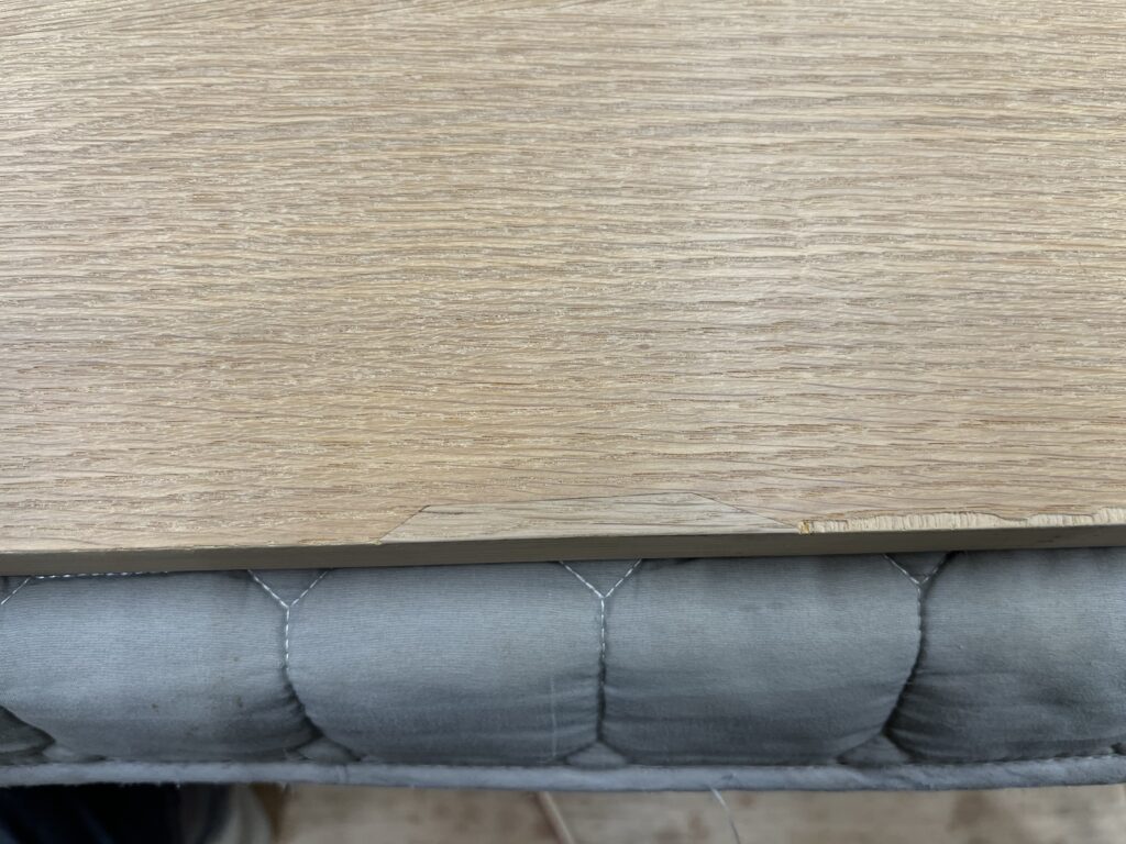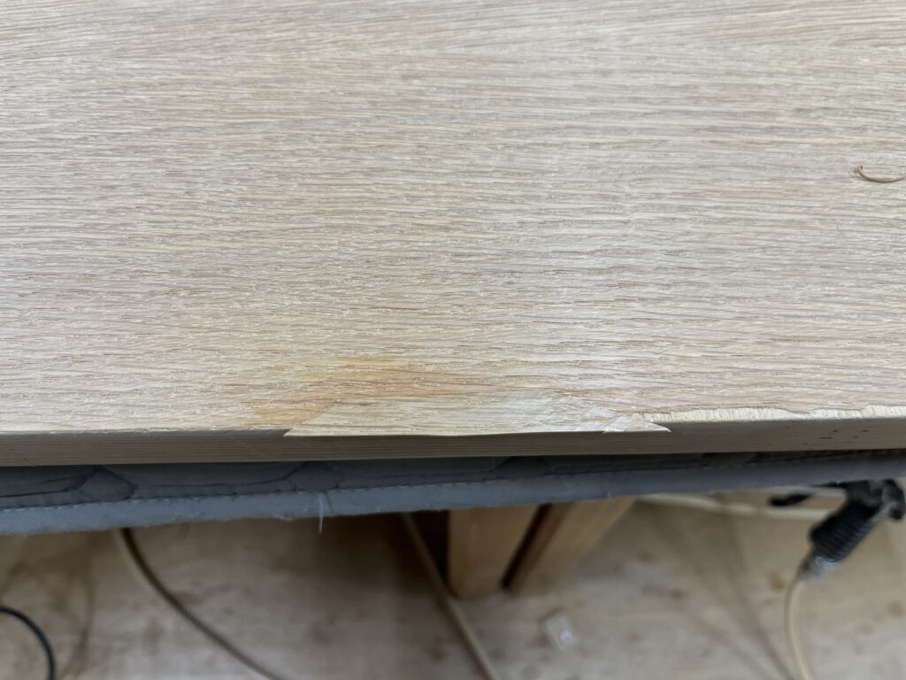 メンテナンス前です。オーク材の突板が剥がれています。