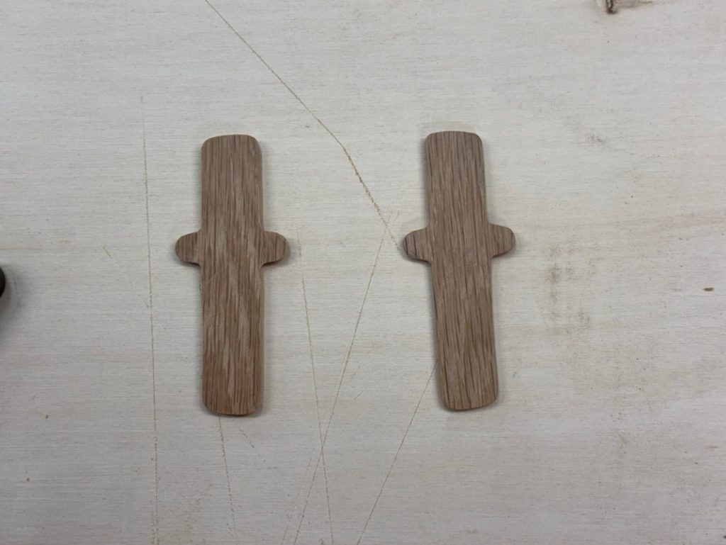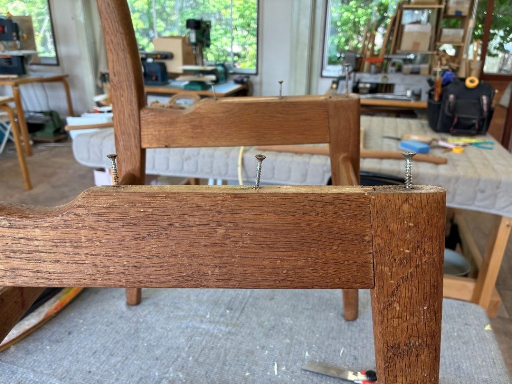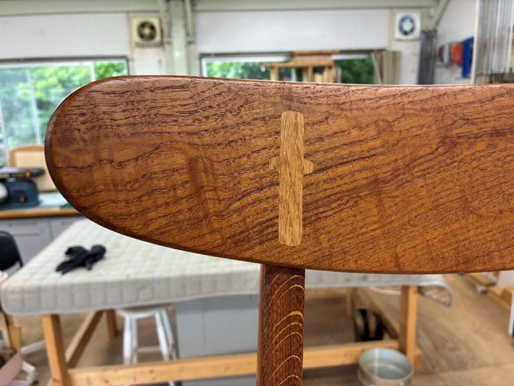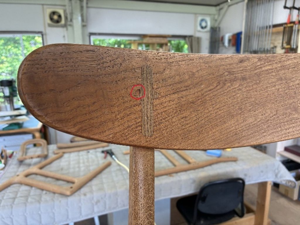 笠木(背もたれ)の十字の象嵌(ぞうがん)が欠けているので新しく作り直すことにしました(赤丸部分の箇所です)。