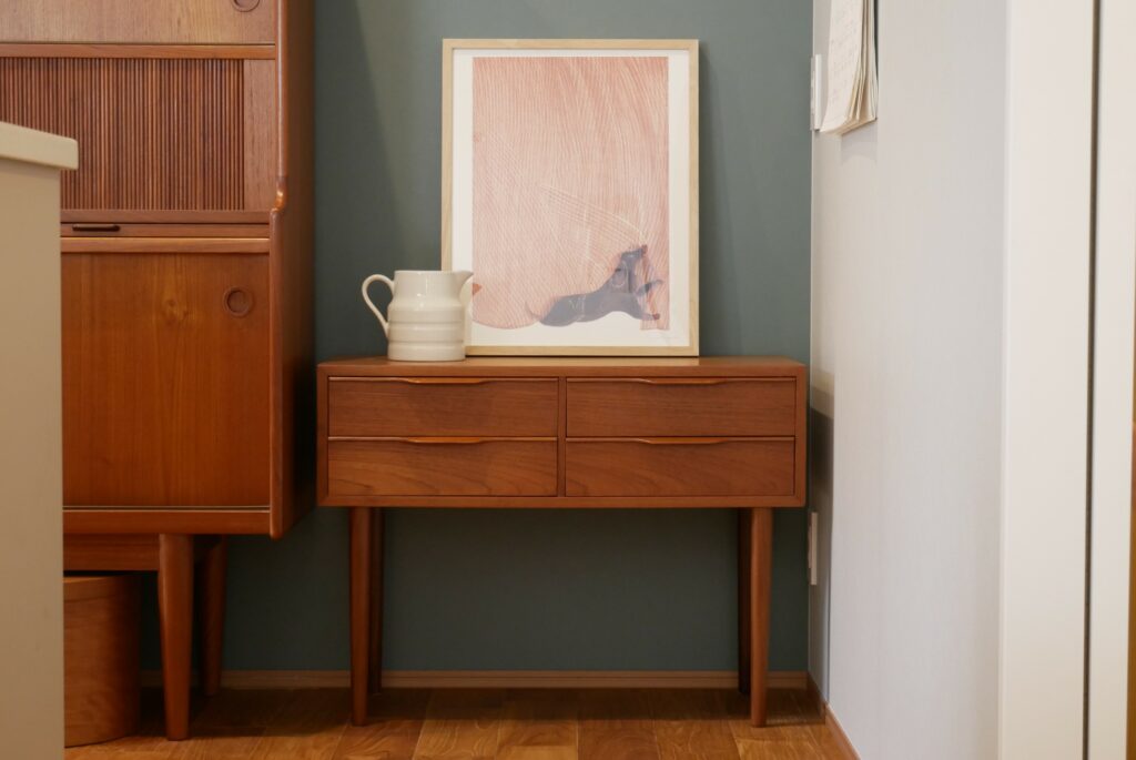 奥様:購入したての頃は美術品を買ってしまった!と緊張しますが、だんだん生活に馴染んできて、傷ついてもまあいっかなという気持ちで接しています。tanukiさんはメンテナンスをしっかりしている印象で、いつも安心して購入しています。買って後悔はないですね。長く使えますし。今後は大きい家具はあまり置けないので、アートや北欧の雑貨を楽しみたいと思っています。