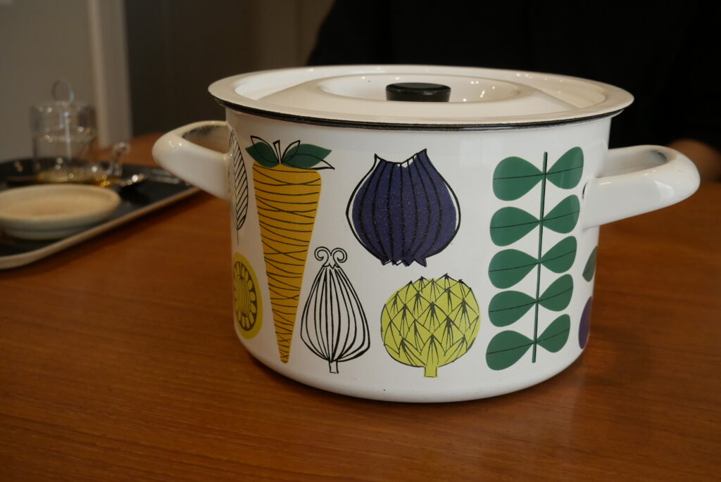奥様:私はありきたりなのですが、かもめ食堂にはまってしまって笑、かもめ食堂をきっかけに北欧の雑貨がかわいいなと思うようになり、一人旅でフィンランド現地の蚤の市で雑貨をいくつか買ってきたというのが最初のきっかけです。その後、お友達と一緒にスウェーデンや新婚旅行でデンマークなど訪れた際にも、雑貨を買うのが楽しくて、いくつか買ったりしてきました。スウェーデンの蚤の市ではお鍋やカッティングボードを購入しました。鍋は値切るすべもなく少し高かったのですが、今でも手元に残っています。単にレトロという感じではないデザインが気に入っています。