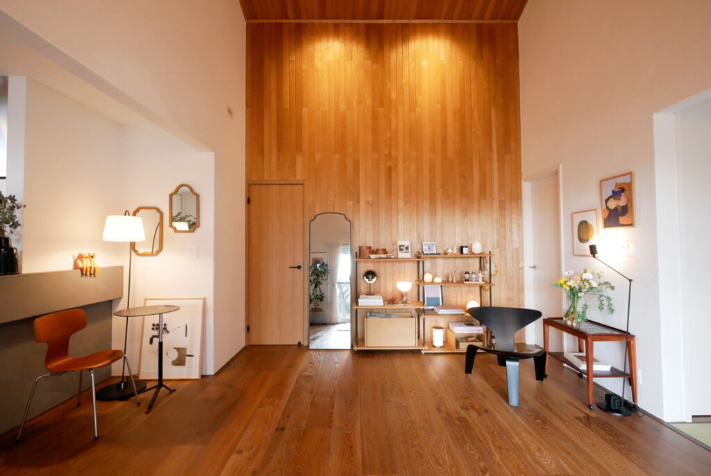 第二十五弾は、3Dパーススクール「essens」を主宰する西谷さんのお宅を訪ねました。学生時代に北欧三国を一人旅し、窯元や椅子の博物館を巡ったことから始まったという北欧好き。その原点を随所に感じる室内には、暖かみのある木材を配した印象的な壁面を背景に、現行品の北欧デザインを中心とした家具や雑貨、照明が心地よく並んでいます。そんな空間に、実はここ最近になって北欧ヴィンテージ家具を少しずつ取り入れ始めたという西谷さん。現行品を軸にしたスタイリングの中に、ヴィンテージをどう自然に溶け込ませているのか——その取り入れ方や感じている魅力についてお話を伺いました。