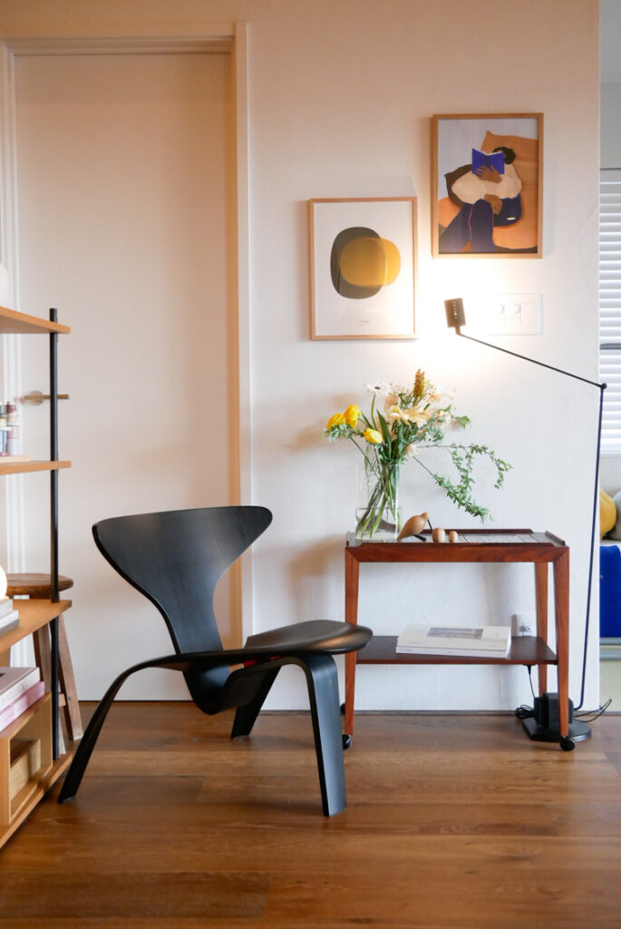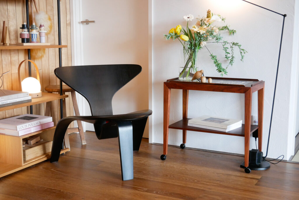 今回訪れた西谷さん宅は、北欧デザインへの愛情と、ご自身の暮らし方への静かなこだわりが、心地良い空間として広がっていました。興味深いのは、実はここ数年で少しずつ北欧ヴィンテージ家具を取り入れ始めたという点です。現行品を中心とした室内に、選び抜かれた数点のヴィンテージがアクセントとして加わることで、空間の深みが増し、現行品だけで揃える雰囲気とはまた異なる魅力、奥行きやあたたかさを感じます。気に入ったものを暮らしの流れの中で自然に取り入れ、日常生活にすっと馴染ませる——。その取り入れやすさが北欧ヴィンテージの魅力なのだと改めて思いました。西谷さん、すてきな時間とお話をありがとうございました。