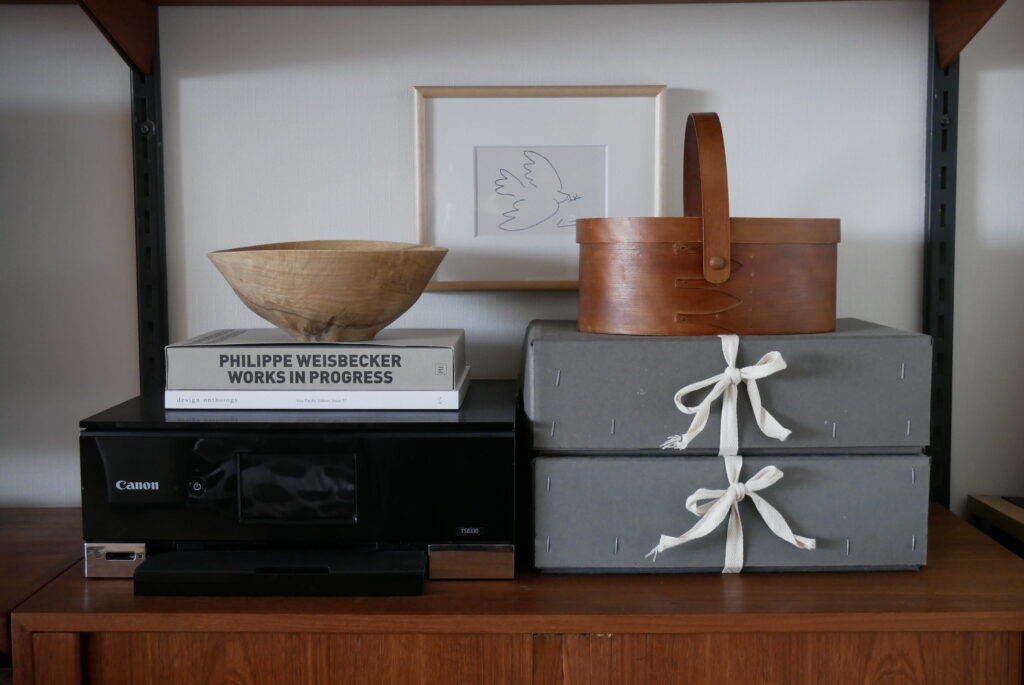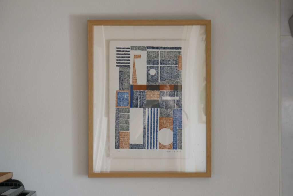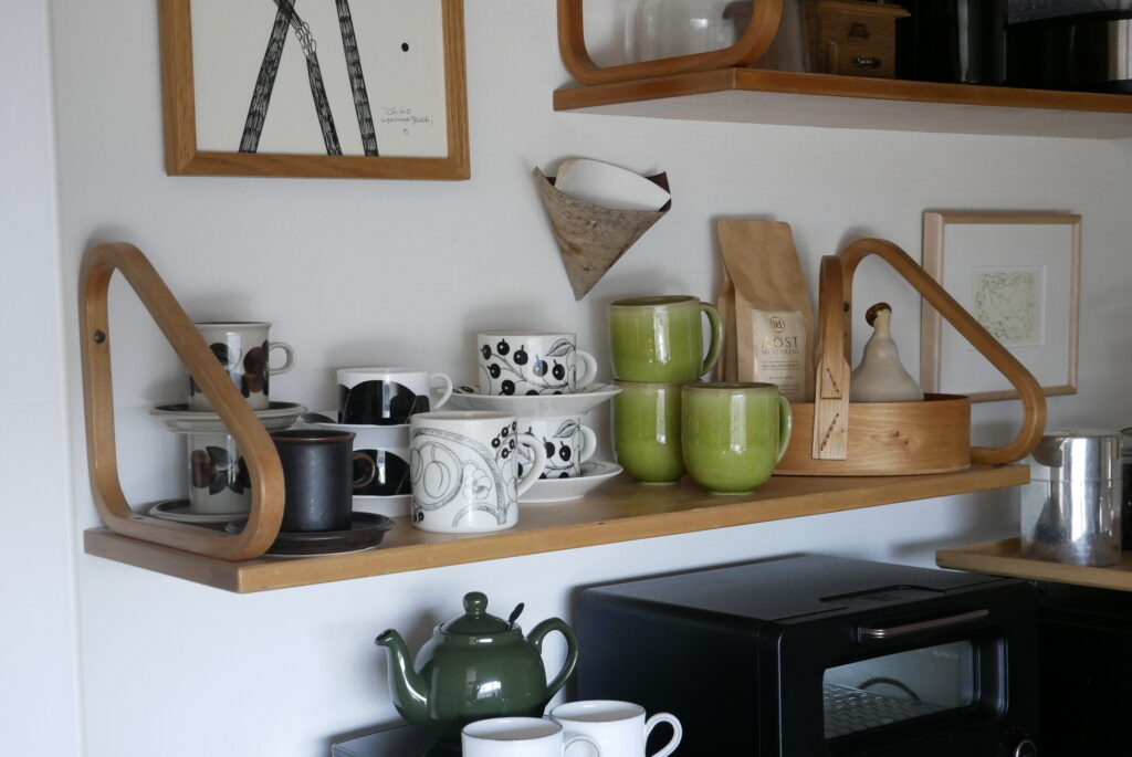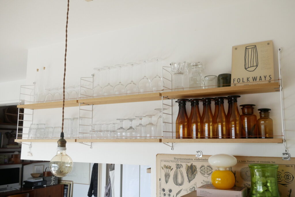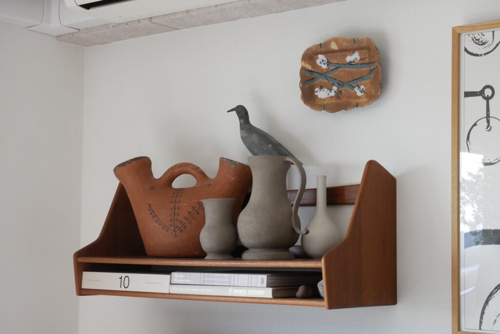 成田さん:壁に掛けてあるアルヴァ・アアルトのウォールシェルフも、互い違いに取り付けて余白にアートを飾るというこれもやりたかったことが実現できていて気に入っています。余白にアートを飾ることで、ちょっと豊かな空間になると思います。