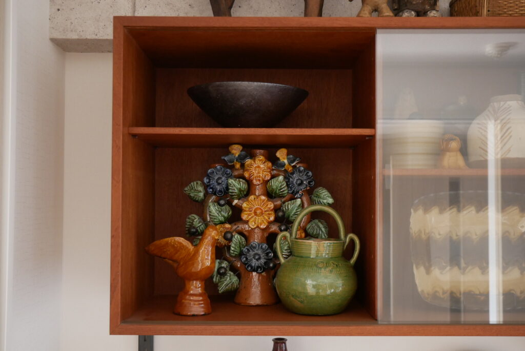 成田さん宅の空間では、北欧ヴィンテージの魅力である“控えめな上品さ”が、日々の風景をそっと豊かにしているように感じました。柔らかな曲線や丁寧に施された仕上げ、造形美といった細部の美しさが、暮らしに自然な品と深みをもたらしていることを改めて感じます。そして何より印象的だったのは、北欧デザインに限らず、現代アートやアフリカのオブジェ、手紙の一部までも──自分が「いい」と思うものを自由に組み合わせる成田さんのスタイルとセンス。完成形を求めすぎず、飾りながら、変えながら、楽しみながら。北欧ヴィンテージにその感性や姿勢が加わることで、空間を整えるだけでなく、住む人の内側まで豊かにしていく力を持っているように思えました。この度はすてきな時間とお話をありがとうございました。