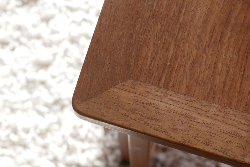 成田さん:このボーエ・モーエンセンのサイドテーブルも天板を一枚の板でもいいようなところでも、それぞれの辺に違う杢目の材を充てて作っている。些細なことなんですが、こういうデザインが普通にできている。これが標準という当時の家具はやっぱりすごいなと思います。ただ、機能的にテーブルが欲しい、という考え方とは違う感じがしますね。
