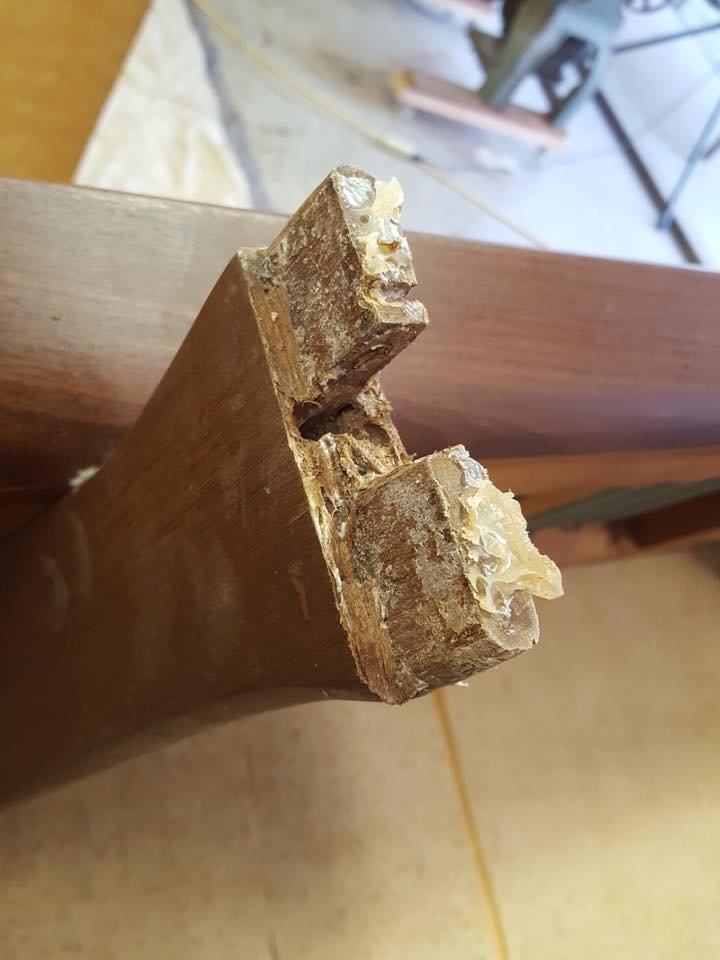 フレームは一度解体し、古い接着剤を除去、圧着致しました。