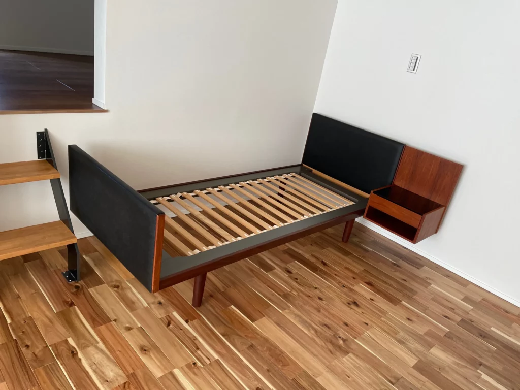 ベッドフレームの大きさを元にお家を設計されたとのことでばっちり収まっておりました。