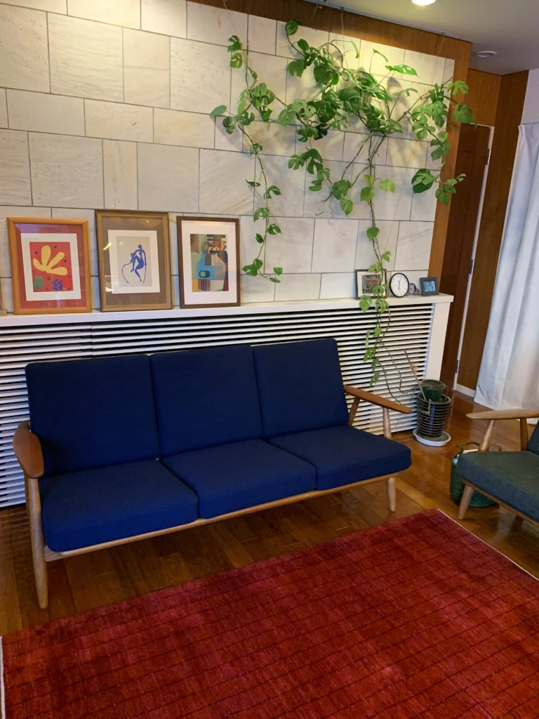 鮮やかなブルーのファブリックにお部屋に映え素敵です。