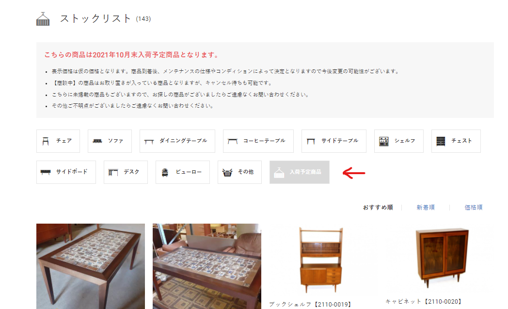 2021年10月末入荷予定商品をストックリストへ掲載しました。